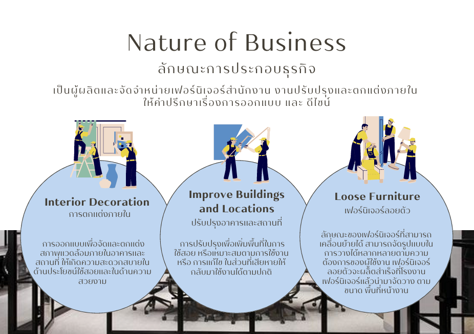 จำหน่ายเฟอร์นิเจอร์สำนักงาน เช่น โต๊ะทไงาน, เก้าอี้สำนักงาน, เก้าอี้จัดเลี้ยง, เก้าอี้พลาสติก, โซฟา, ตู้เก็บเอกสาร ไม้-เหล็ก, งานซ่อมเฟอร์นิเจอร์